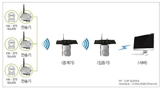 UbiAmi 무선 원격 검침 시스템은 수도/가스/전기 등 계량기의 에너지 사용량을 카운트 센서나 홀 센서를 이용, 424MHz 대역 무선 네트워크 통신망으로 전송기를 통해 원격으로 검침하여 과금용 WEB 서버에서 데이터 관리, 분석 및 과금 서비스까지 제공하는 시스템이다. 424MHz 대역 통신망을 이용하기 때문에 장애물 관련 전파 왜곡에 강하며, 디지털 계량기와 연동하므로 정확한 검침값을 확인할 수 있다.
