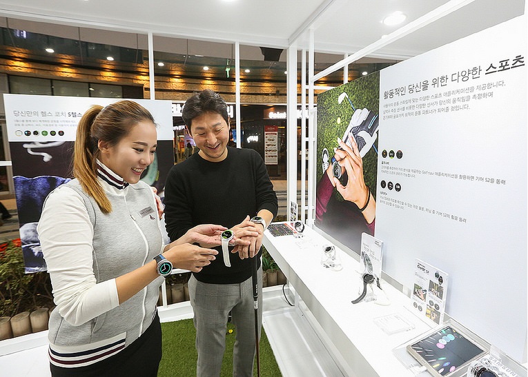 사진. 삼성 기어S2의 골프나비 앱을 체험하는 모습