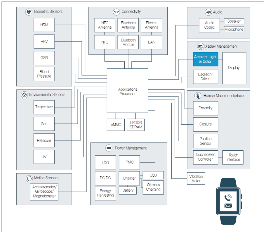 웨어러블 헬스 및 피트니스 시장은 더 얇은 디스플레이를 필요로 한다. 이에 ALS 센서를 초박형 백라이트 디스플레이에 통합하는 기술이 웨어러블 기기 설계자에게 중요하게 인식되고 있다. 하지만 ALS 디바이스가 터치 패널 디스플레이의 실제 플렉스 PCB에 직접 탑재되기 때문에 초박형 폼팩터를 가져야 한다는 것과 센서의 정밀도 및 감도는 잉크로 도색된 유리의 후면에서도 고신뢰성을 보여야 한다는 과제가 있다.