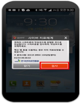 이에 미래창조과학부는 KISA, 이통3사와 협력해 악성앱에 감염된 스마트폰을 식별하고 치료를 안내하는 ‘모바일 응급 사이버 치료 체계’ 구축을 추진했으며, SK텔레콤은 지난 4월 10일부터 본 치료서비스를 시행해 8월말까지 자사 가입자를 대상으로 총 1만9338건에 대해 악성앱 감염사실과 치료방법을 안내했다. 10월 1일부터는 KT와 LG유플러스도 관련 시스템을 구축하고, 자사 가입자를 대상으로 치료서비스를 제공한다.