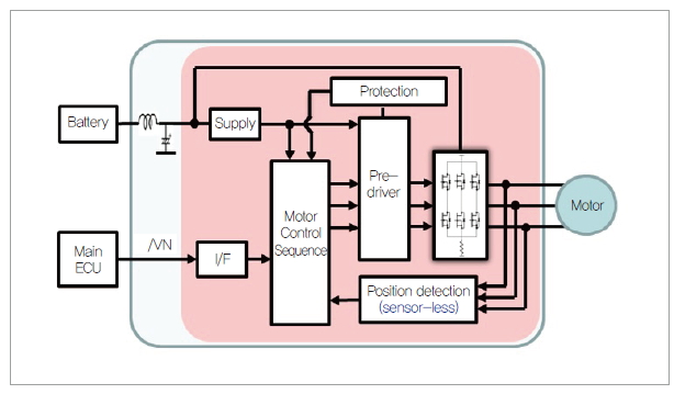 최신 파워 반도체와 주변 부품들을 집적시키는 것은 사이즈와 무게를 줄여 BLDC 모터를 차량 내에 배치할 때 발생할 수 있는 문제를 해결하는 데 매우 효과적이다.