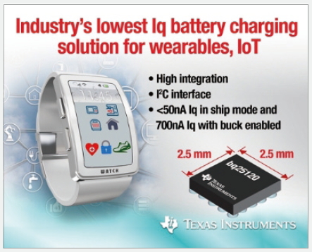 ▲ 웨어러블 및 IoT용 배터리 관리 솔루션, ‘bq25120’