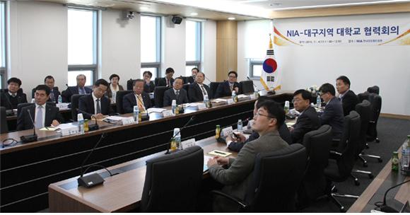 한국정보화진흥원(NIA)은 4일 NIA 대구본원에서 지역사회와의 상생 방안을 모색하기 위한 간담회를 개최했다. 이 날 간담회는 지역 대학과 정보통신기술(ICT) 분야의 산‧학 협력을 위해 마련된 것으로 NIA 서병조 원장을 비롯해 경북대 손동철 총장, 계명대 남재열 부총장, 대구카톨릭대 김민수 부총장, 대구대 이근용 부총장 등 대구지역 대학 관계자 약 40여 명이 참석했다.