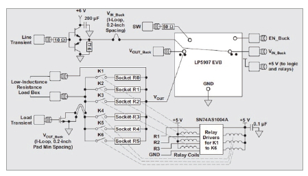 느린 과도현상 자극은 불량한 레귤레이터를 양호하게 보이도록 만들 수 있다. 이에 대응하여 지속적인 연구개발(R&D)을 통해 설계를 더욱 간소화하였고, 그 결과 기생 L과 C가 낮아 구축과 복제가 쉬워 설계 및 애플리케이션 랩에 사용하기 적합해졌다. 상당한 테스트 지그를 설정하는 것만으로 솔루션의 반은 해결한 셈이다. 최적의 응답을 달성하기 위해서는 DUT(device under test)를 반드시 유선 연결하거나 인쇄회로기판(PCB)에 소켓을 끼워야 한다.