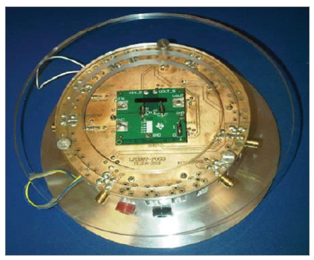 그림 8에서 볼 수 있듯이 강화된 지그는 원형 PCB 구성으로 설계됐고, 이것은 DUT의 EVB를 조정하여 최대한의 탄력성을 발휘할 수 있다. 다른 DUT 레이아웃은 최적의 성능을 발휘할 수 있도록 PCB에 납땜을 하는 것이다. 무선주파수(RF)가 보드에 사용되었고 PCB 트레이스를 맞췄으며, 임피던스를 제어했다. 또한 지그는 재충전 배터리 팩으로 DUT에 깨끗하고 조용하게 전력을 제공하므로 저잡음 애플리케이션에 적합하다. 극한의 테스트 요건을 위해 누출 없이 밀봉 할 수 있는 온도 사이클링 에어스트림 시스템에 연결되도록 지그를 재설계했다.