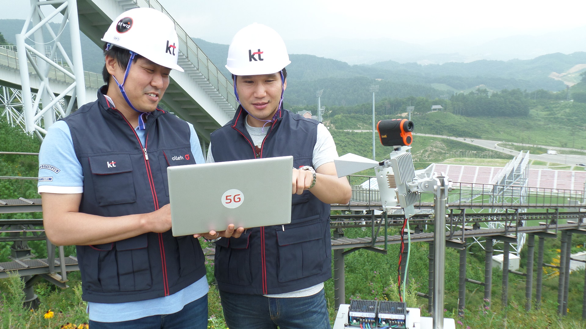 KT가 5G 핵심기술인 밀리미터파(millimeter Wave) 필드 테스트를 평창 알펜시아 리조트와 크로스컨트리 경기장에서 진행하고 기본 설계 작업을 완료했다. 지난 7월 서울 우면동에 개소한 '5G R&D 센터'에서의 실내 테스트 결과를 기반으로 28GHz 대역 밀리미터파 특성 시험과 안테나 설계까지 모두 5G 서비스가 이루어질 평창 현장에서 이루어졌다.