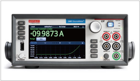 키슬리 2461 고전력 소스미터 SMU 장비는 10A/100V, 1000W의 전류 펄스를 인가할 수 있어 전력 소자의 열 발생량을 최소하고 소자의 신뢰도를 유지할 수 있다. 18비트 고속 디지타이저가 2개 장착되어 있어서 실제 측정하는 소자가 동작 중 동작의 특성을 측정할 수 있고, 측정 결과가 화면에 바로 표시돼 즉각적으로 분석할 수 있다.