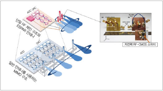 ▲ 그림 3. 단일 RF 체인 안테나와 일반 안테나 비교