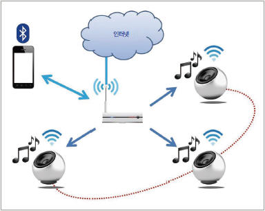 ▲ 그림 1. 무선 오디오 시간 동기화 복수 스피커 시스템
