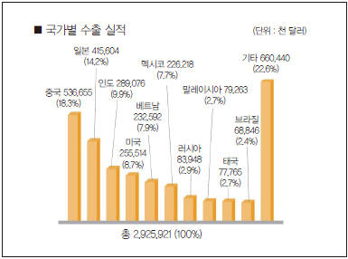인도·미국·베트남·멕시코 수출 2억 달러 넘어