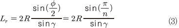 그리고 Lr은 자유 롤러의 길이이다. 특정한 자유 롤러의 개수 이 먼저 정해지면, 자유 롤러의 길이 Lr은 다음과 같이 구할 수 있다.