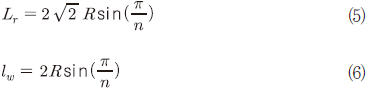 만약 림 휠과 자유 롤러의 각도가 45°라면, 자유 롤러의 길이 Lr과 휠의 폭 lw는 각각 다음과 같이 간단하게 구할 수 있다.