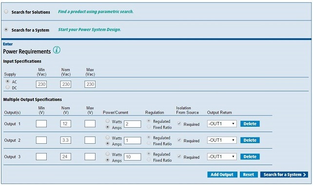 바이코의 PSD 온라인 설계 툴은 입력 전원(AC 혹은DC)에서 시스템 부하까지 다중 출력 모듈러 전원 시스템 설계를 쉽고 빠르게 도와준다. 엔지니어들은 간단히AC 또는 DC 입력 소스와 작동 범위와 필요한 출력 전압, 각각의 전력 (또는 전류) 조절 및 절연 사양만 정하면 PSD툴이 자동으로 최적의 솔루션을 생성한다.