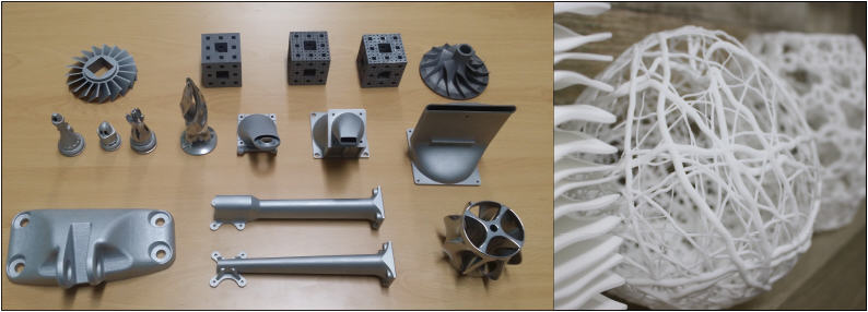 A. 항공, 자동차, 로봇, 기계, 전기·전자, 의료, 패션 등 다양한 산업 분야의 3D프린팅 제작품을 전시할 예정입니다. 저희 파트너스랩은 최신 기술을 가진 독일 EOS사의 P 396과 M 290 장비를 이용하여 다양한 분야의 출력 서비스를 하고 있습니다. 3D 출력 서비스를 하는 기술로서는 SLS(선택적 레이저 소결)과 DMLS(직접 금속 레이저 소결)이 있습니다. 이들 제조 방법은 아주 고운 분말층을 쌓아 가면서 선택적으로 레이저를 써서 알갱이를 용해시키므로 3D CAD 데이터로부터 직접 형태를 만들 수 있기 때문에 부품을 빠르고 유연하게 그리고 저비용으로 생산할 수 있습니다.