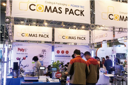 자동날인기, 고주파 씰링기, 오토 피더(자동이송장치), 라벨러, POLYtij 잉크젯 프린터를 취급하는 포장기계 전문 업체 코마스팩은 국제포장기자재전에 참가해 다양한 포장기계를 선보였다. 2012년에 개발된 오토 피딩 시스템은 3건의 자체 특허를 보유하고 있으며 시장에서 좋은 반응을 얻고 있다. 최근에는 각종 잉크젯 프린터 및 비전 시스템과 연동해서 사용할 수 있도록 개선됐다.