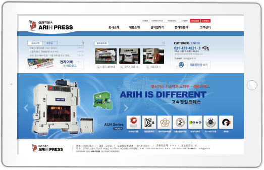 고속 정밀 프레스 전문 제조회사인 아리프레스(ARIH PRESS)의 ‘ARIH’는 새로운 길을 개척해 나간다는 선구자적 의미와, 작은 물줄기가 모여서 큰 강을 이루듯 회사의 성장과 발전을 추구한다는 뜻을 담고 있다. 아리프레스는 고속 프레스 전문 엔지니어들로 구성된 회사이며 고속 프레스의 원조인 CS사에서 20여 년 동안 기술 개발, 생산 조립, A/S, 영업 등을 담당하며 쌓은 노하우를 바탕으로 고성능 고속 프레스를 제작하고 있다.
