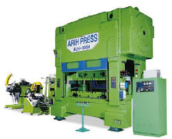 그리고 AUH 시리즈는 4포스트 가이드의 초고속 정밀 프레스이며 고속 회전으로 생산성을 향상시켰다. 4포스트 플런저 가이드와 대형 금형 장착이 가능한 볼스터 플레이트를 채택했으며, 더블 크랭크 구동 방식으로 되어 있다. 컴퓨터 구조 해석으로 설계된 견고한 프레임은 높은 강성을 유지함으로써 동적 정밀도가 우수하다. 조작이 용이하고 한 눈에 운전 상태 및 생산 현황을 파악할 수 있는 미려한 주 제어반이 설치되어 있고, 고속 운전 시 발생되는 진동 및 소음을 최소화하는 기계식 다이내믹 밸런스 및 카운터 밸런스가 내장되어 있어 전후, 좌우의 진동을 완전히 흡수하므로 정숙한 운전이 가능하다. 또한 유압 로킹 및 전동 모터에 의해 조절되는 다이하이트 조절 장치는 최소 눈금 0.01mm까지 조절 가능하며 버튼 조작만으로 작동이 가능하다. 이 외에 ABH, AUG, AOH, AIE 시리즈 등도 보유하고 있다.