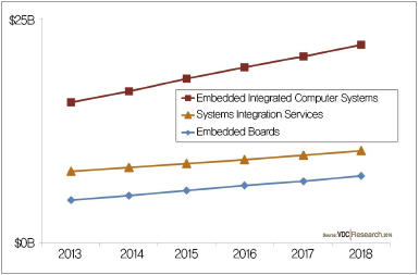 이와함께 2014년 임베디드 소프트웨어 시장 규모는 95억 달러로 잠정 집계됐다. 보고서는 이 시장이 2023년에는 180억 달러 규모로 성장할 것이며, 가까운 미래에 IoT에 대한 수요가 폭발하게 될 경우, 임베디드 소프트웨어 산업 성장에 긍정적인 영향을 미칠 것으로 내다봤다.