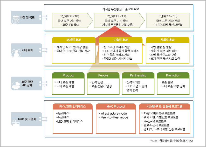 - 2016년 이후, 융합 원천기술 확보(VLC 무선통신 기술을 다양한 산업분야에 적용)