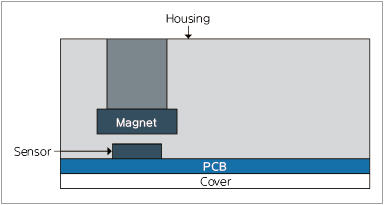 또한 회전 MPOS 애플리케이션에서 정확한 각도 측정을 위해서는 센서 IC를 샤프트 또는 회전자 끝에 있는 회전 자석과 정밀하게 정렬해야 한다. PCB를 커버에 부착할 경우 하우징과 관련된 커버 위치의 모든 편차가 센서 IC로부터 출력의 편차(부정확성)를 초래할 수 있다.
