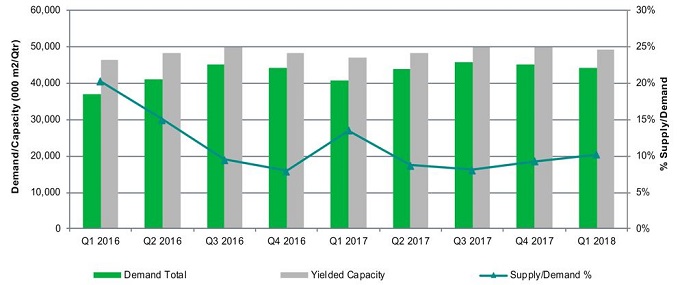 IHS Markit의 Display Supply Demand & Equipment Tracker에 따르면, 대면적 평판디스플레이 수요는 2016년부터 2018년까지 면적 기준으로 매년 5~6%가량 증가할 것으로 전망되지만, 대면적 평판디스플레이 생산능력은 2017년에 단 1% 그리고 2018년에 5% 증가할 것으로 예상된다. 세계 최초의 10.5세대 공장을 포함해 중국 공장들의 캐파가 유입되는 2018년 하반기가 되어서야 다시 공급이 넉넉해질 것으로 전망된다.