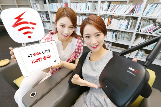 ▲KT의 기가인터넷 가입자가 200만을 돌파했다. 사진은 지난 5월 가입자 150만 돌파를 알리던 모습이다. © News1 조현아 인턴기자