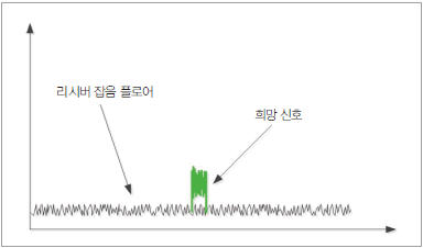 리시버의 기본적인 성능 지표 중 하나가 리시버의 감도다. 이것은 리시버가 성공적으로 복구 및 처리할 수 있는 가장 약한 신호 출력을 의미한다(그림 2). 복조 대역폭 내에서 리시버의 잡음이 수신된 신호보다 더 클 경우 약한 입력 신호는 복조될 수 없다.