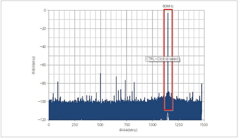 ▲ 그림 3. IF 샘플링에서 60MHz 대역의 주파수 스펙트럼 (Fs = 250 Msps가 180MHz에 집중) (a)와 RF 샘플링