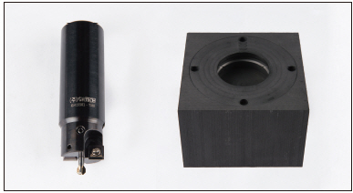 ▲ 다이아몬드 툴팁의 전용공구와 이를 이용하여 흑연 소재에 실시한 특별한 디자인의 홀 가공