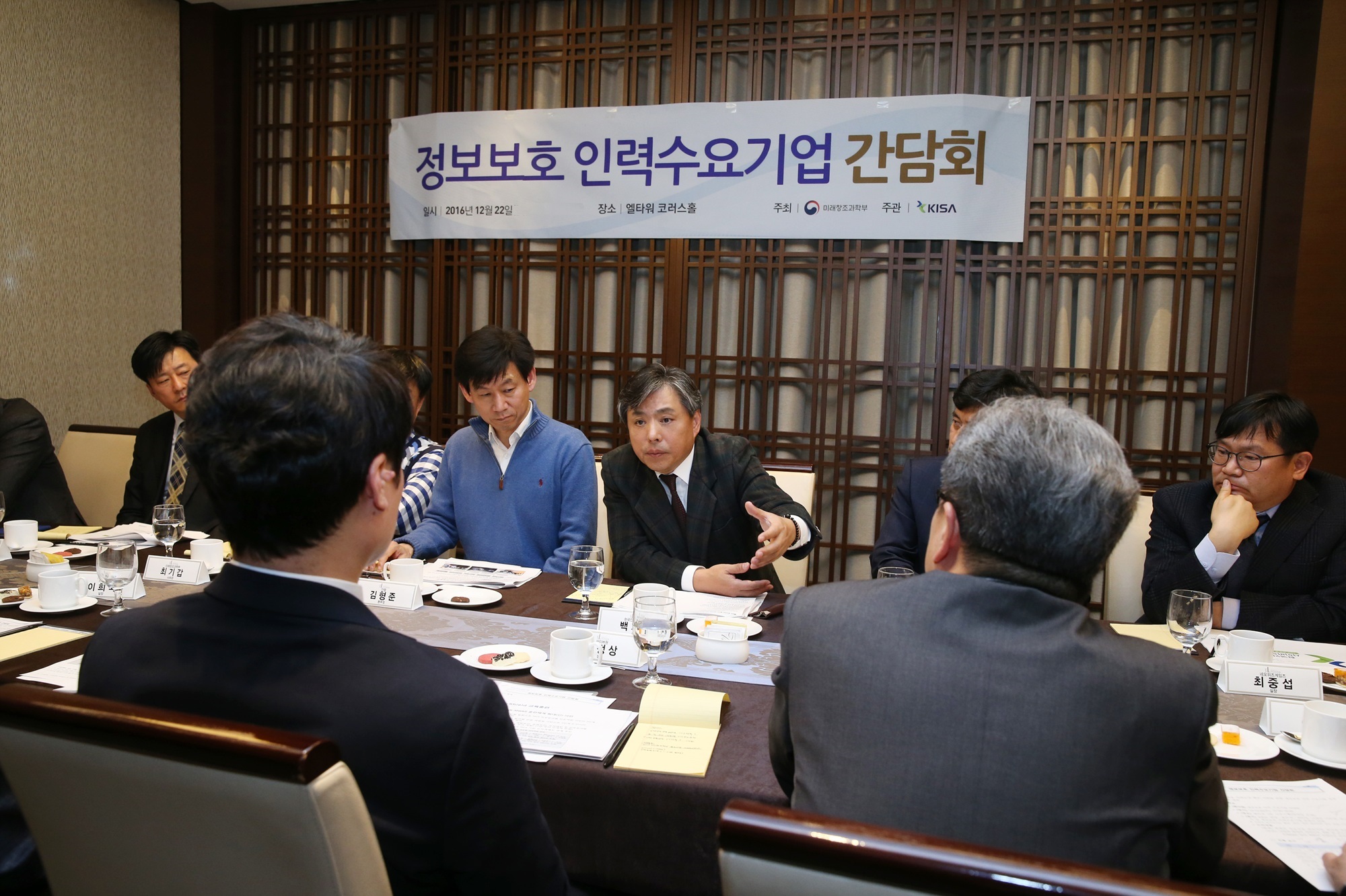 한국인터넷진흥원(KISA, 원장 백기승)은 최근 엘타워에서 기업 내 정보보호에 대한 투자와 전문인력 수급에 관심이 높은 주요 기업체 보안부서 책임자들과 함께 국내 정보보호 인력수급 불균형 해소 및 인력양성 등 현안 논의를 위한 기업간담회를 개최했다.