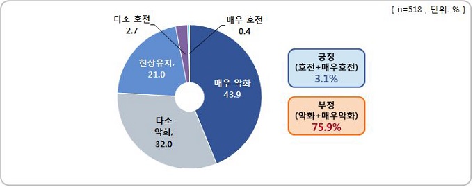 중소기업중앙회가 전국 소상공인 518명을 대상으로 ‘소상공인 2016년 경영실태 및 2017년 전망조사’를 실시한 결과, 75.9%의 소상공인들이 작년에 비해 올해 체감경기가 악화됐다고 응답했으며, 경영수지 또한 72.6%가 악화됐다고 응답했다.