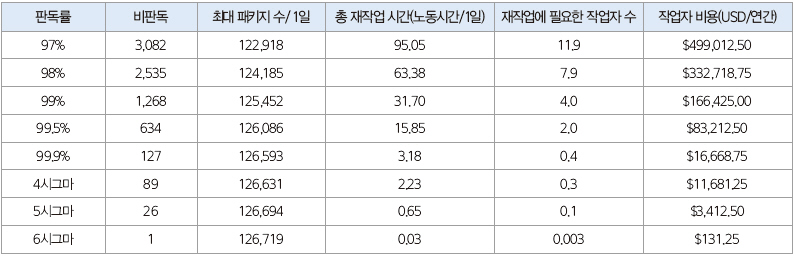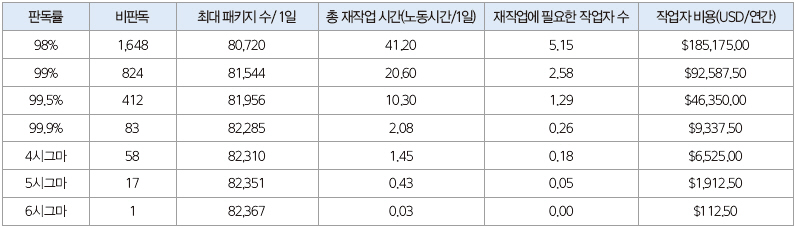 ▲ 표 4. 소규모 물류 센터의 판독률 대비 인건비 분석