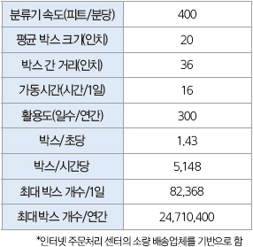 ▲ 표 1. 대량 물류센터의 작업현황에 대한 추정치*