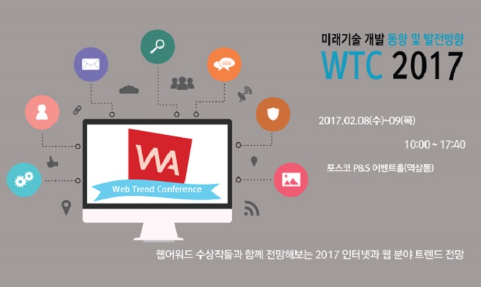 한국인터넷전문가협회(협회장 김철균)는 오는 2월 8일과 9일, 양일간 역삼 포스코 P&S 타워에서 ‘2017 웹 트렌드 분석 및 미래기술 개발 동향과 발전 방향’이라는 주제로 컨퍼런스를 개최한다.