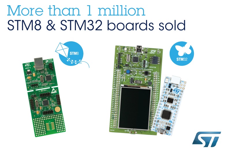 ST마이크로일렉트로닉스(STMicroelectronics, 이하 ST)가 STM32 마이크로컨트롤러용 1백만 개, STM8 제품군용 10만 개의 개발 키트 공급을 달성해 전 세계 초소형 스마트 디바이스 개발에 기여했다고 밝혔다.