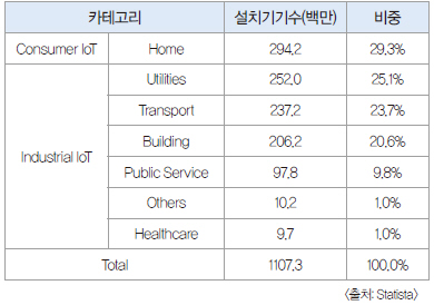 ▲ 표 1. 글로벌 IoT 시장 분야별 비중