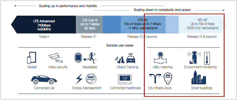 ▲ 그림 2. 소물인터넷 시대에서 주목받는 NB-IoT <출처: Qualcomm, 2015>