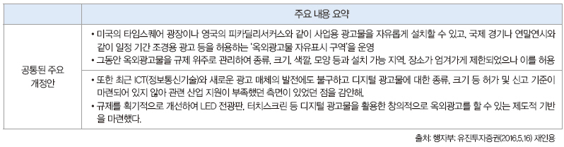 ▲ 표 8. ‘옥외광고물 등 관리법 시행령’의 주요 개정 내용