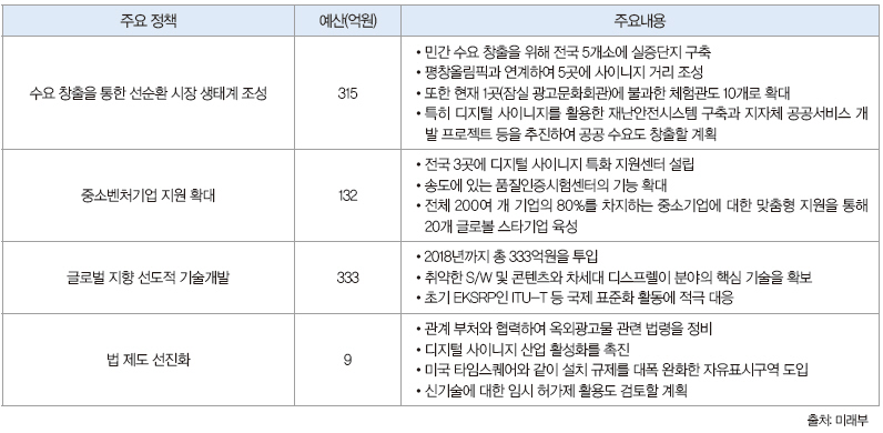 ▲ 표 10. 미래부의 디지털 사이니지 활성화를 위한 주요 추진 정책