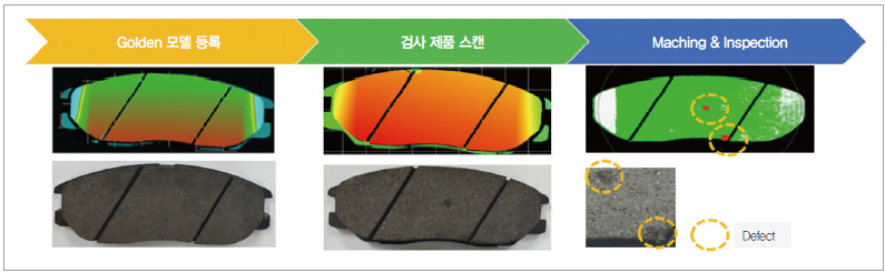▲ 그림 6. 3D 매칭을 이용한 브레이크 패드 불량 검출