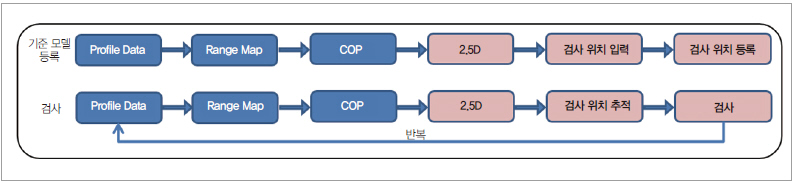 그림 7은 COP 과정까지는 3D 매칭과 동일한 과정으로 진행되지만, COP 이후에 2.5D 영상 및 검사 항목 설정 부분에 대한 차이를 보여주고 있다.