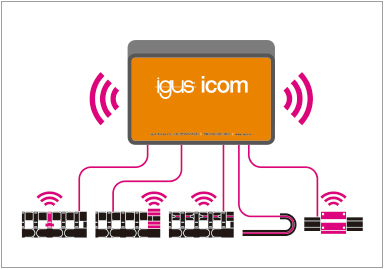 네트워크 기능을 탑재한 스마트 플라스틱 제품군에는 drylin 직동 가이드, 에너지 체인, 고유연성 케이블이 주를 이룬다. 다양한 센서 및 모니터링 모듈로 구성되어 있는 isense라는 제품군의 이들 지능형 제품들은 자가 모니터링을 통해 고장 전 유저들에게 조기 경보를 보낼 수 있다. igus 통신 모듈 (icom)과 네트워킹 연결되며 고객의 IT 인프라와 직접 통합이 이루어진다.