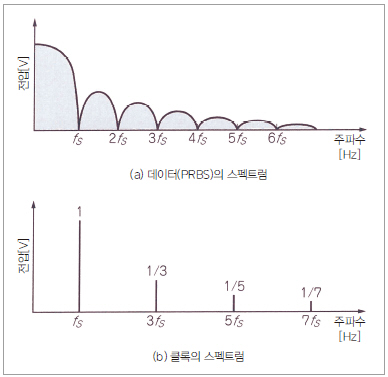 ▲ 그림 19. PRBS 데이터와 클록의 스펙트럼 (데이터, 클록 모두 본래의