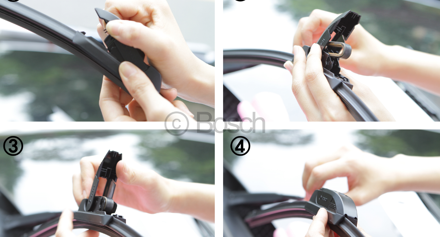 이는 어답터의 종류에 따라 장착 방법이 다르기 때문이다. 보쉬 에어로트윈의 경우, 먼저 와이퍼 블레이드 상단에 있는 커넥터 뚜껑을 두 손가락으로 누르며 위로 당겨 열어준다. 와이퍼 암을 커넥터에 정확히 맞춰 끼워 끝까지 잡아당긴 후, 커넥터 뚜껑을 닫으면 된다.