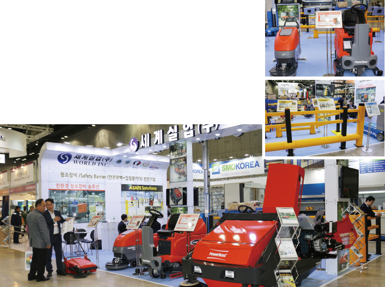 안전 환경 장비 전문 기업인 세계실업은 KOREA MAT 2017에서 다양한 산업용 청소장비와 안전장벽 솔루션을 전시했다. 세계실업은 즉각적인 부품 교체 및 제품 납기를 위한 재고를 충분히 보유하고 있고, 경험이 풍부한 인력도 충분해 좋은 품질과 합리적인 가격의 장비를 제공하고 있다.