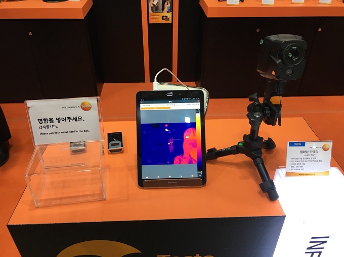 테스토는 이번 전시에서 다양한 산업분야에서 사용되는 열화상 카메라를 선보였다. testo 872는 모바일 기기와 연동되어 편리하고 스마트하게 사용할 수 있다는 점이 특징이다. 해상도는 320X240픽셀(슈퍼레졸루션 적용시 640X480픽셀)이고 0.06℃의 높은 온도 분해 기능을 갖고 있다. 열화상 카메라와 함께 모바일 기기에서 실시간으로 확인이 가능한 스마트 프로브 제품도 선보였다. 테스토의 파이프 클램프 온도 측정기는 난방 시스템의 급배기 온도 측정과 냉방 시스템의 과열도, 과냉도 자동 계산을 위한 온도 측정이 가능하다.