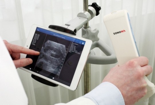 맥심에 따르면 총 중량 390g인 소논 300은 배터리가 내장된 휴대용 무선 초음파 진단기다. 크기는 작지만 기존 초음파 진단기와 동일한 기능을 탑재하고 가격은 10분의 1 수준이다. 수술실∙응급실∙구급차와 같은 의료, 응급재난, 교육 등 다양한 의료 응용 분야에 사용된다. 휴대폰, 태블릿 등으로 클라우드 기반 이미지 교환 시스템을 사용해 어디서든 초음파 진단이 가능하며 원격지에서도 영상을 볼 수 있다.