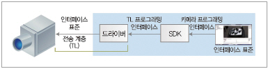 두번째 계층은 SDK(software development kit)의 일부분인 이미지 획득 라이브러리다. SDK는 독립 제품일 수 있고, 프레임 그래버 또는 이미지 프로세싱 라이브러리와 함께 제공될 수 있다. 전송 계층이 카메라 기능에 접근하고 이미지를 저장하는데 SDK가 사용된다.