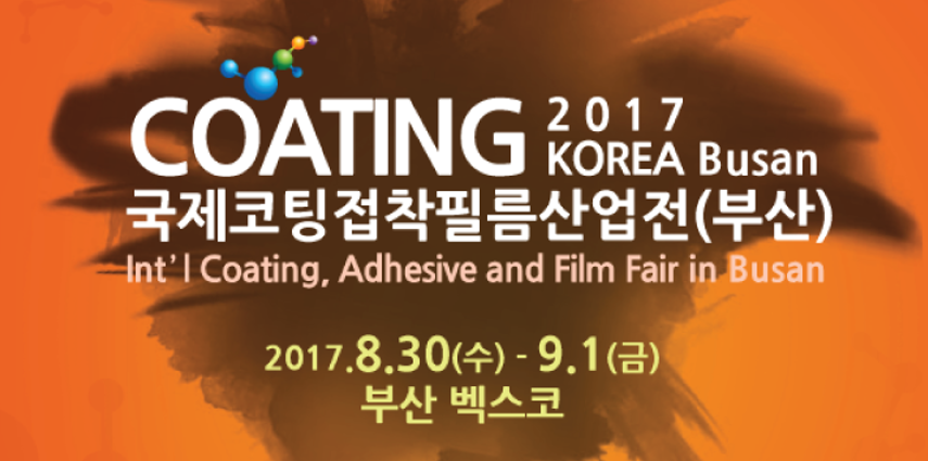 코팅, 접착, 필름 최신 기술 및 제품 동향을 살펴볼 수 있는 전시회인 2017 부산 국제코팅접착필름산업전(이하 코팅코리아)이 오는 30일부터 9월 1일까지 3일간 부산 벡스코 제1전시장에서 개최된다.