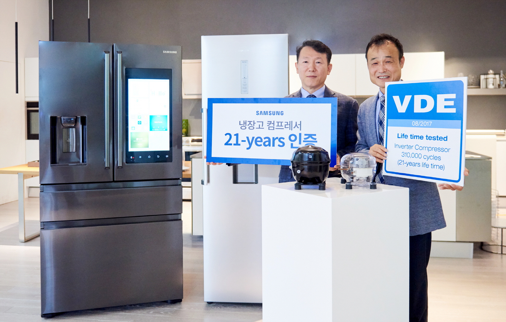 삼성전자에 따르면 VDE는 120일동안 31만 번의 삼성전자 냉장고 품질 시험을 진행하며 ‘인버터 컴프레서’의 구성 요소, 진동 및 소음, 안전 결함 등을 확인해 본 결과, 해당 제품의 내구성이 21년을 사용해도 처음과 같은 상태를 유지한다는 것을 인증했다.